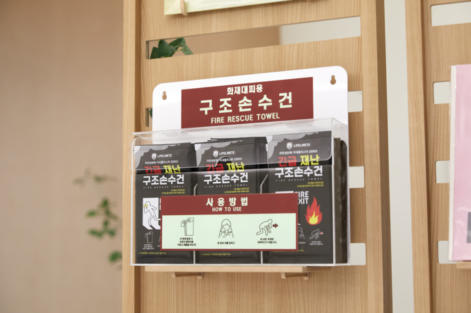 특히 화재대피용 구조손수건은 친환경 다층 구조 필터 기술을 적용해 연기 및 유해 물질 차단 성능을 강화한 제품으로, 병원·요양시설·학교·사무시설 등 다중이용시설을 중심으로 납품이 확대되고 있다.