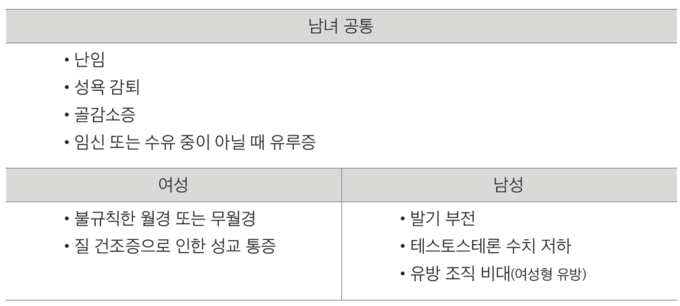 프로락틴 수치가 비정상적으로 높아지면 생식 기능 및 호르몬 균형 이상으로 여러 증상이 나타날 수 있다.