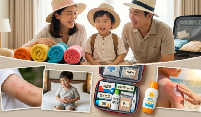 아이들은 성인보다 환경 변화에 민감하기 때문에 설사나 구토 같은 장 증상이 생기기도 하고, 모기나 벌레에 물려 피부가 붓거나 가려움이 심해지는 경우도 흔하다. 또한 강한 햇빛에 오래 노출되면서 햇빛 알레르기나 일광 화상 같은 피부 문제가 나타나기도 한다. 여행지에서 바로 병원을 찾기 어려운 상황도 있기 때문에 기본적인 상비약을 준비해 두면 많은 도움이 된다.